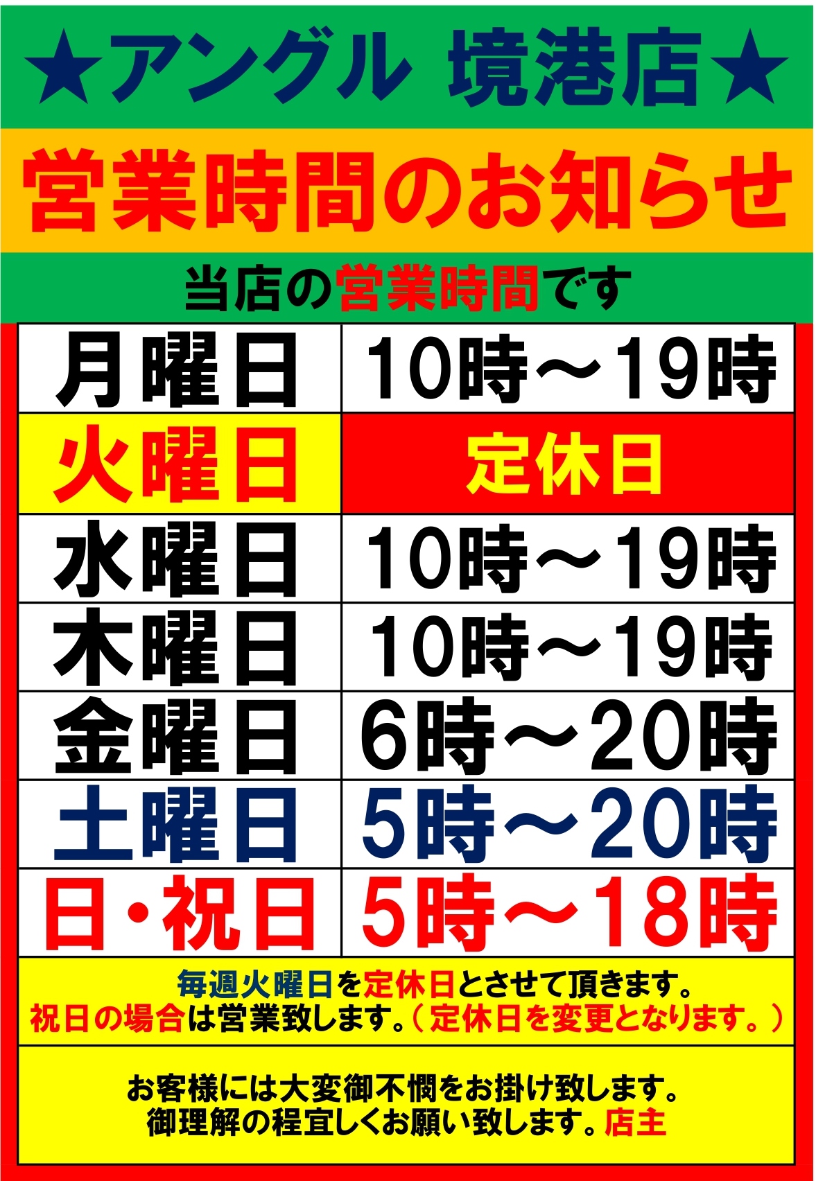いつもアングル境港店を御愛顧頂きまして、