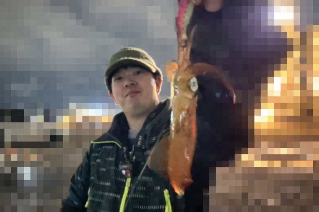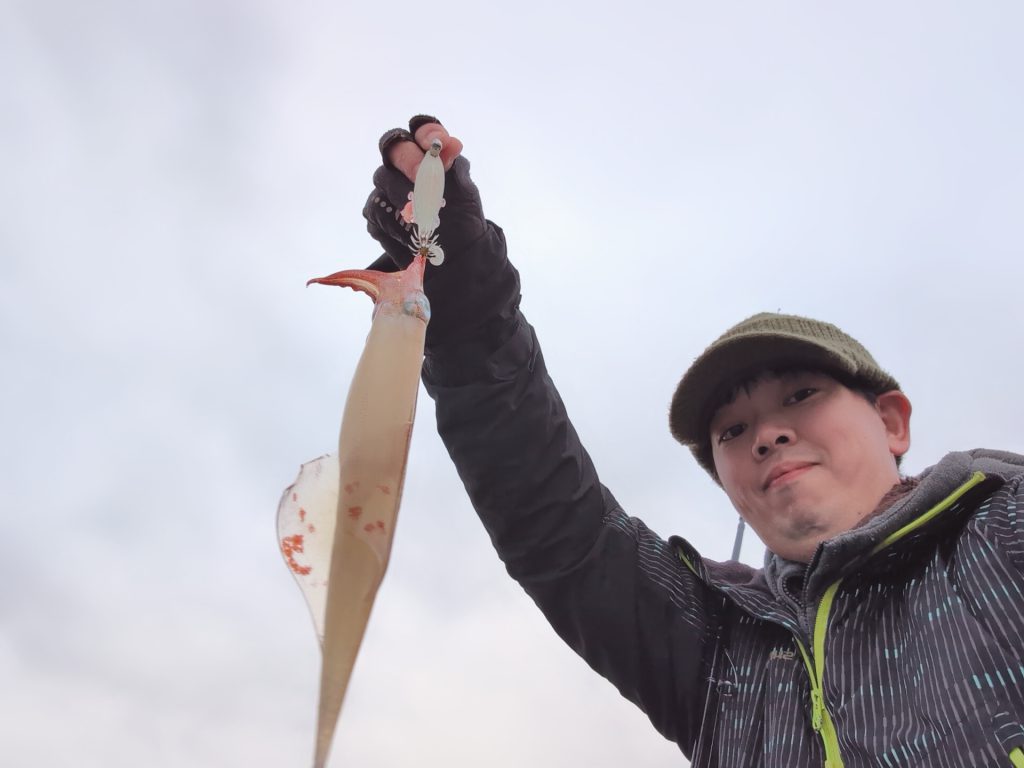モゾッとイカ特有の違和感のようなアタリからアワせるとメスのヤリイカが釣れました♪