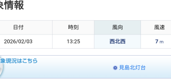 2月3日(火) はれ 南西強 波1.5m