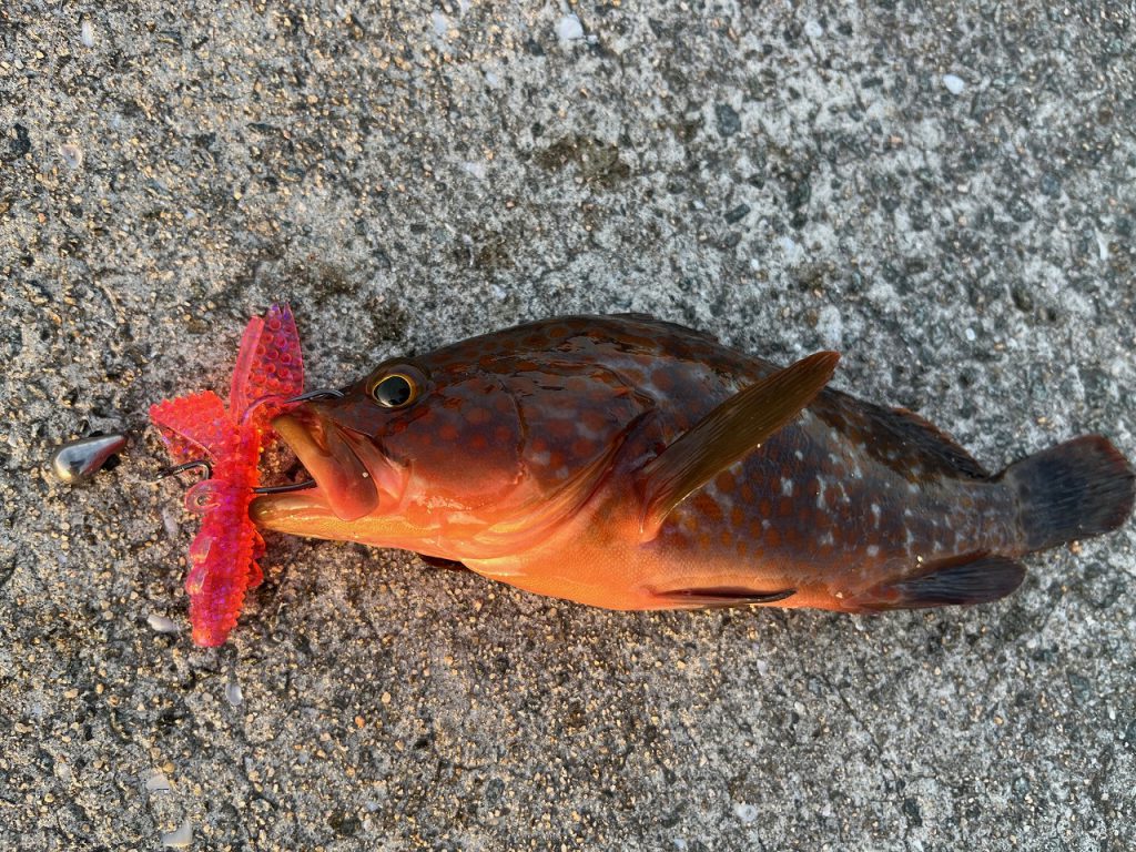 釣れたのは30cmに届かないキジハタでした(^O^)写真だけ撮ってすぐにリリース( ̄∇ ̄)
