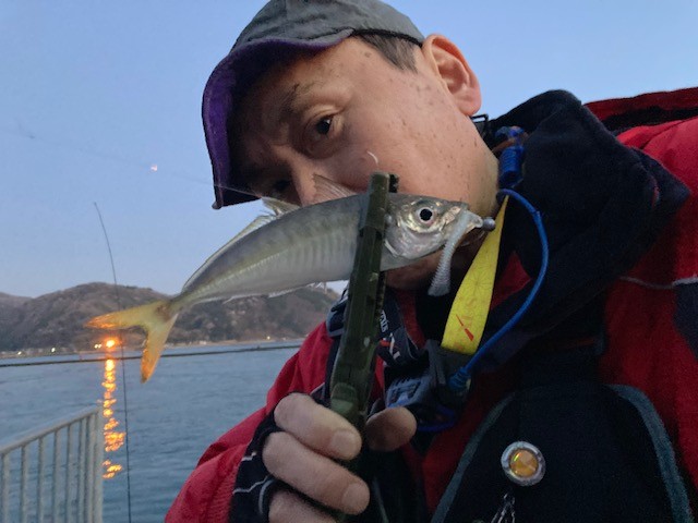 日が高いうちは何のアタリもなく、18時過ぎにようやく釣れたものの、マアジではなくマルアジ!