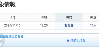 11月10日(月) はれ 北西爆風 波3.0m