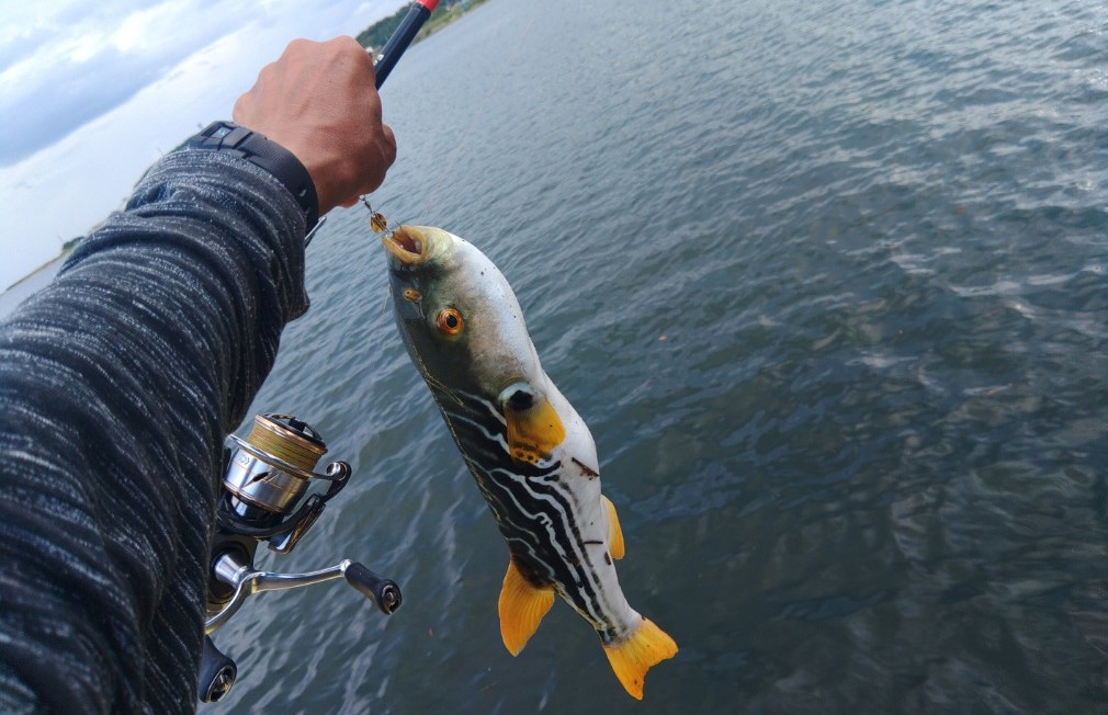 でかいシマフグがHITします!