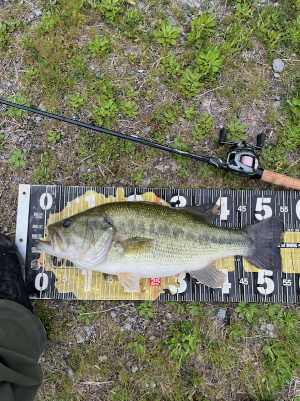 野池釣行にて55CMのバスでました。釣れ方としてはスクーパーフロッグダディ+スナックジグのミドストでひったくられました。春らしくていいバスでした。皆さんもぜひ春のバスフィッシング楽しみましょう!