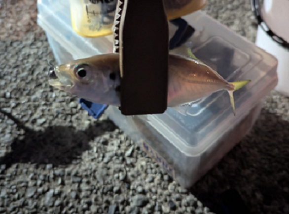ジグヘッドを2gに変えてしっかり底を取ると・・・・・・アジが連発!