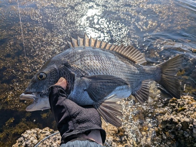 のっこみチヌ調査5回目地磯へ 藻抜きはマスターしたので(?)場所を変えて釣行しました 早々に良型チヌらしきアタリがしかし「磯擦れ」でバラシ そこからチヌのアタリは遠のき真鯛ばかりで忘れた頃にようやくチヌ チヌは1枚の釣果でした まだまだやり取り練習が必要で...